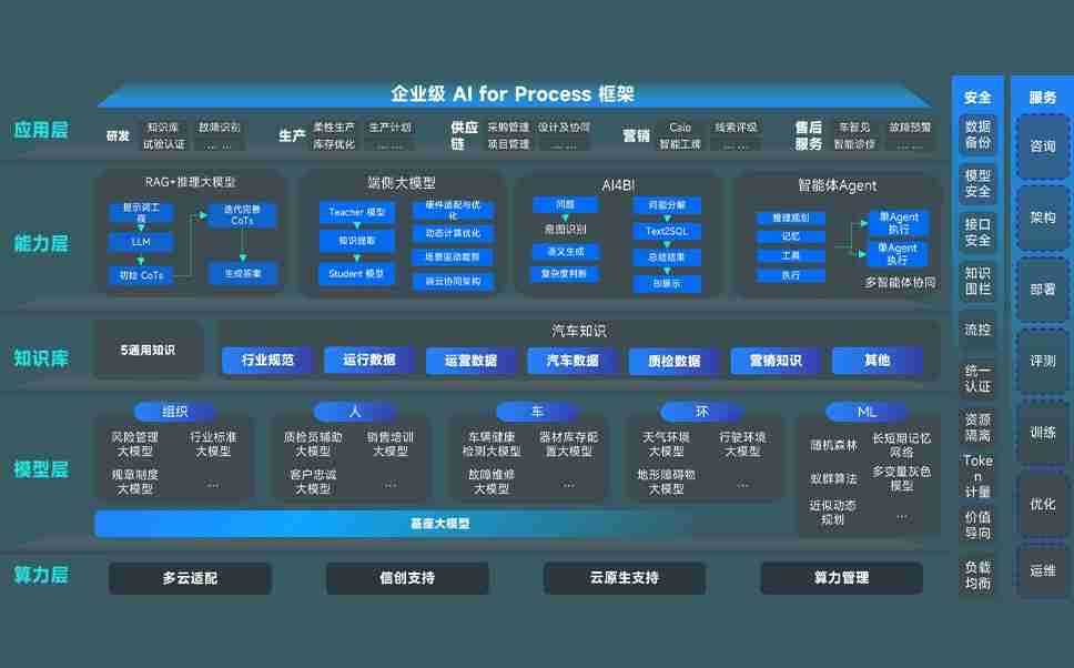9B娱乐问学智车解决方案是一套基于AI技术的汽车行业智能化系统,,覆盖从底层算力到顶层AI应用的全栈方案。。。。方案由算力层、、、、模型层和应用层组成:算力层,,方案支持多种一体机配置,,具备云端灵活部署、、、多云适配以及动态优化计算资源的能力;模型层,,,,9B娱乐问学平台版提供了企业级AI应用一站式构建与管理平台,,支持基于后训练强化技术的汽车企业专属模型的训练、、、评测和运营;应用层,,,9B娱乐问学DeepSeek版提供包括超级员工、、智能招采、、、智能营销、、、智能客服、、AI for BI等一系列解决方案,,,可助力汽车行业实现数字化转型,,让管理更智能、、、响应更敏捷。。